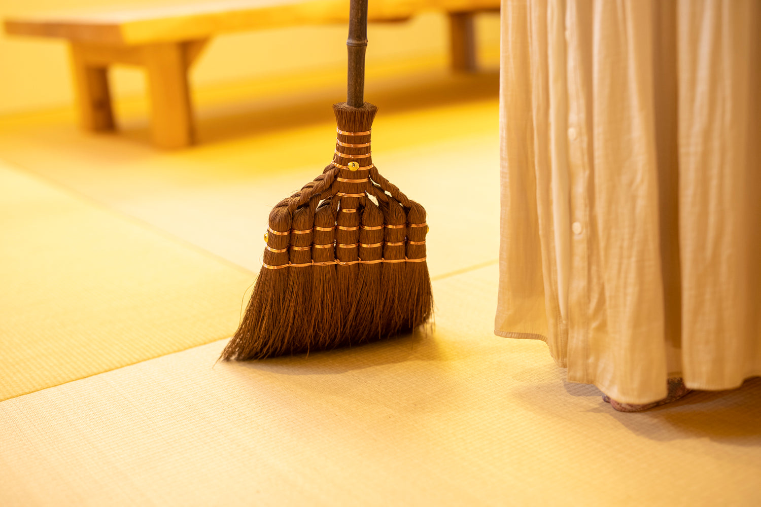 柔らかく、しなやかに 棕櫚皮箒 短柄