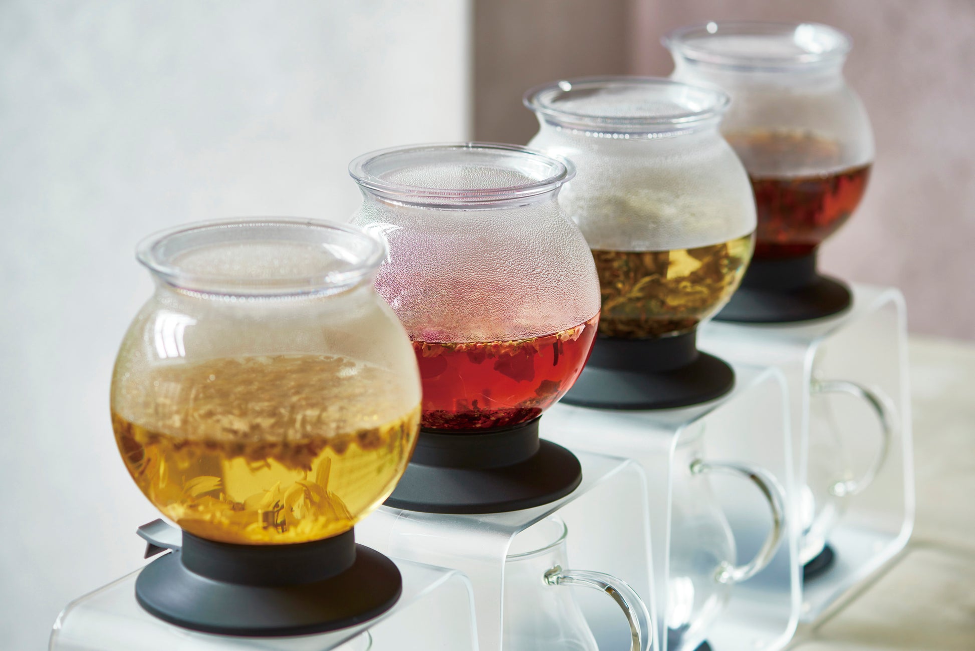 スイッチ操作でドリッパーからピッチャーへ一気に注ぐ仕組みで、氷を入れればそのままアイスティーが完成。